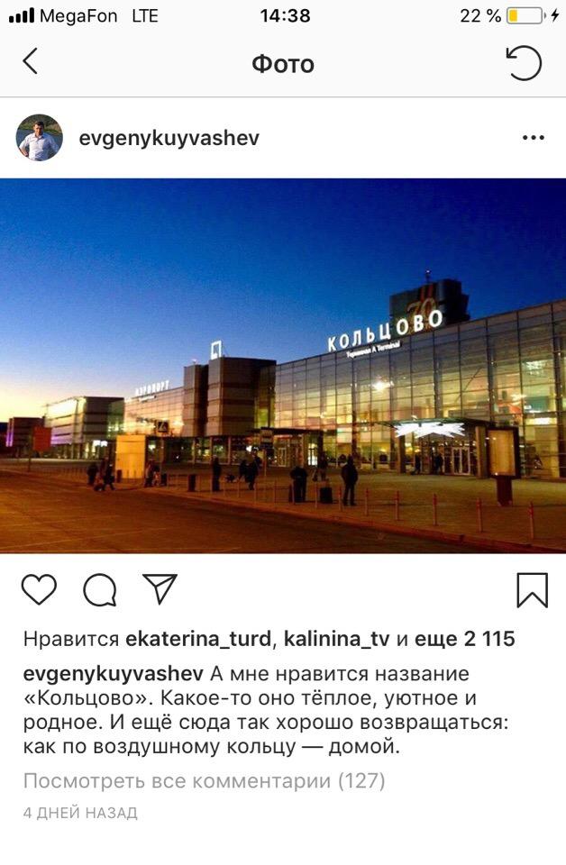Ранее Евгений Куйвашев на своей личной странице в Instagram писал, что ему нравится «теплое и уютное» название Кольцово.
