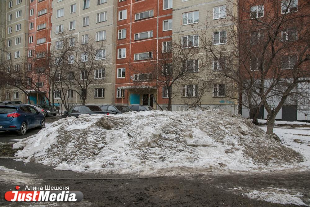 «Вот это чья куча снега? Значит так, вывозим снег сами, а потом предъявляем претензии. С подобными случаями надо бороться», – сказал Александр Высокинский, показывая на гору грязного снега на улице Уральская.