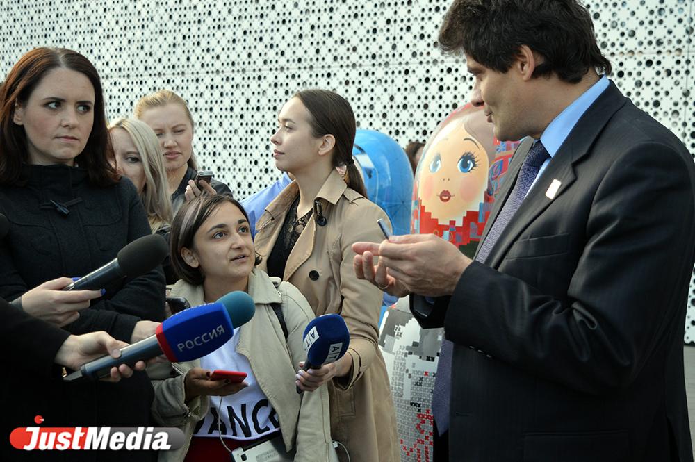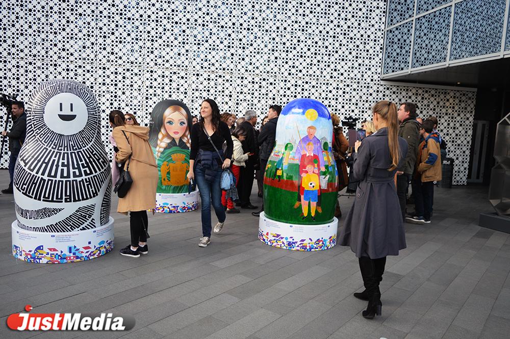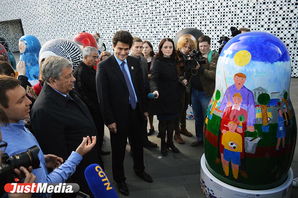Раньше всех с мероприятия ушел новый мэр, заявив, что сейчас ему надо заниматься бюджетом Екатеринбурга на следующий год. Когда на площадке у Ельцин Центра уже не осталось высокопоставленных гостей, матрешек начали подкрашивать специальными баллончиками. Завтра их отправят в Лондон, Буэнос-Айрес, Брюссель, Париж, Милан, Шанхай, Дубай, Берлин, Барселону и Кейптаун, где две недели будут выставляться в знаковых местах. Пару каждой матрешке составит ее «двойник», который будет расписан местным художником и отразит его понимание темы российской заявки «Преобразуя мир: инновации и лучшая жизнь — для будущих поколений». В числе иностранных мастеров – Джина Портера (Барселона), Евгенио Кутика (Буэнос-Айрес), Нина Нолте (Берлин), Мариска Нелл (Дубай), граффити-команда из Брюсселя и другие. Российских матрешек расписали художники и дизайнеры – Тим Аввакумов, Алена Азерная, Анна Белоусова, Андрей Карпов, Павел Агалаков, Мелисса Вахабова и Дмитрий Шишкин.