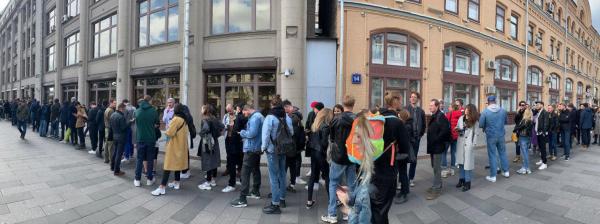 В Москве у здания администрации президента РФ проходит массовая акция протеста в поддержку актера Павла Устинова. Желающие развернуть свои плакаты и встать с одиночным пикетом у здания выстроились в очередь.