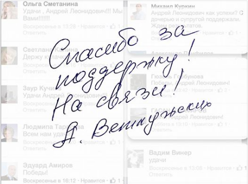 «Важно очень, что в Госдуму по Нижнетагильскому округу тоже избран наш товарищ - представитель профкома Уралвагонзавода, так же, как и я, заместитель председателя движения «В защиту человека труда!» Алексей Балыбердин. А в законодательное собрание Свердловской области - председатели профкомов НТМК и УВЗ Владимир Радаев и Евгений Лутохин, и бывший руководитель профорганизации СВЖД Анатолий Сухов. А также более 10 профсоюзных депутатов в местные думы! Мощная команда!» - пишет Ветлужских.