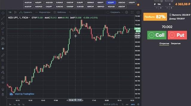 Компания работает с классическими бинарными опционами. Пользователь должен спрогнозировать цену по отношению к текущему значению и с учетом экспирации.