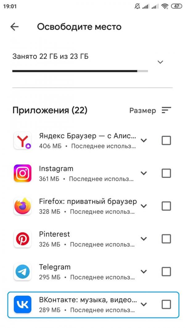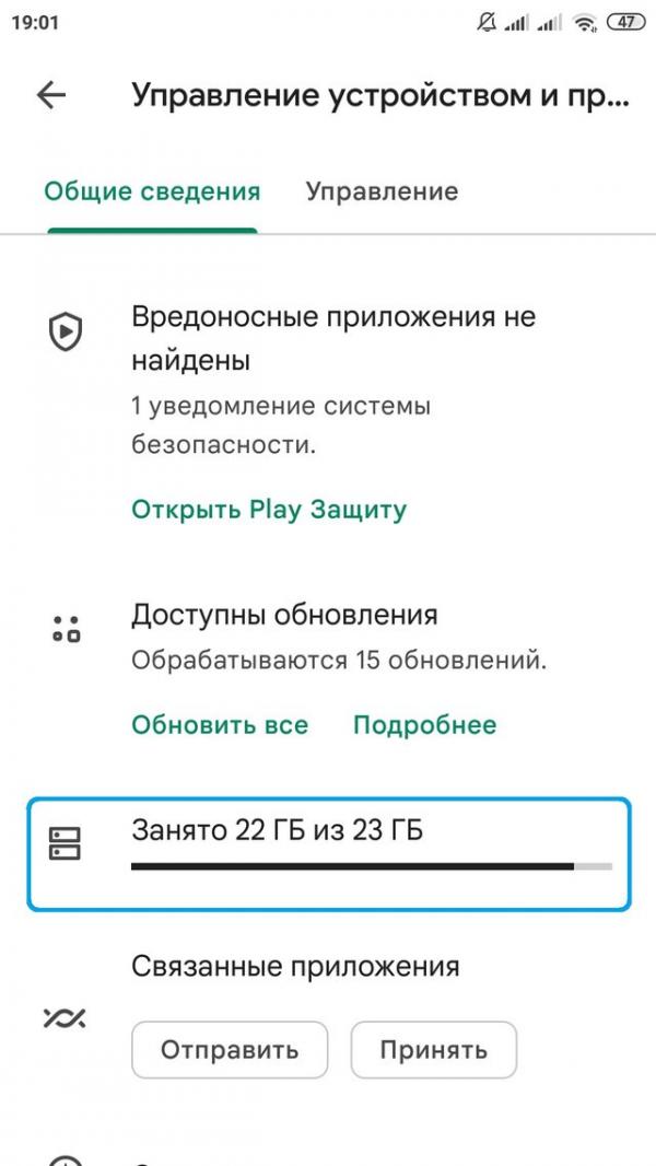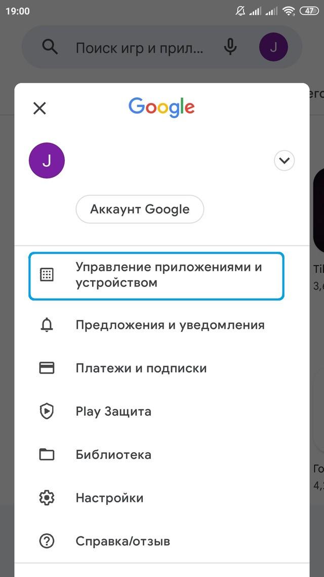 Отыскать приложение ВКонтакте. Для этого нужно нажать на иконку пользователя в поисковой строке, выбрать «Управление приложениями и устройством», а после найти раздел, показывающий общее количество памяти устройства и сколько из неё уже занято. Здесь и нужно найти ВКонтакте.