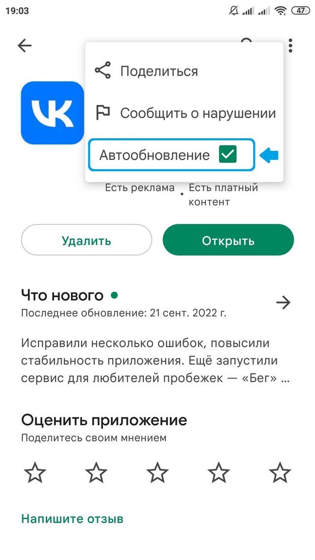 После этого приложение ВКонтакте больше не будет обновляться самостоятельно.