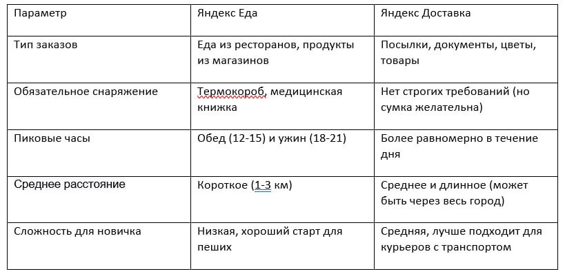 Новичку, особенно если это пеший курьер, я бы советовал начинать с Яндекс Еды. Почему?