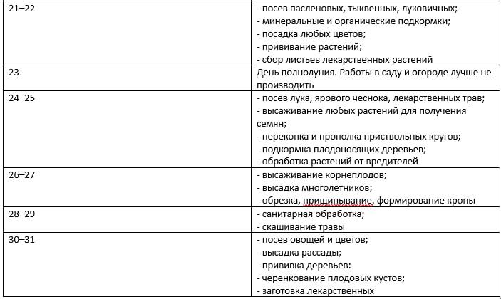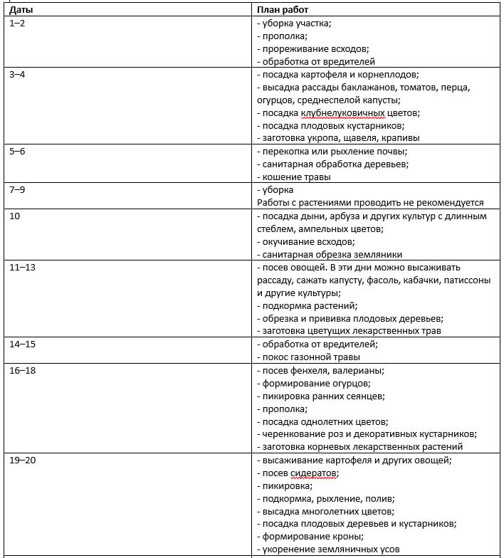 Таким образом, наиболее благоприятными для посадки днями в последнем весеннем месяце являются 3–4, 11–13, 21–22, 30–31 мая.