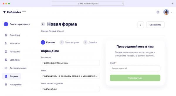 Тем, у кого ещё нет базы, поможет встроенный конструктор форм подписки для размещения на сайтах. Данные подписчиков будут автоматически вливаться в базу.