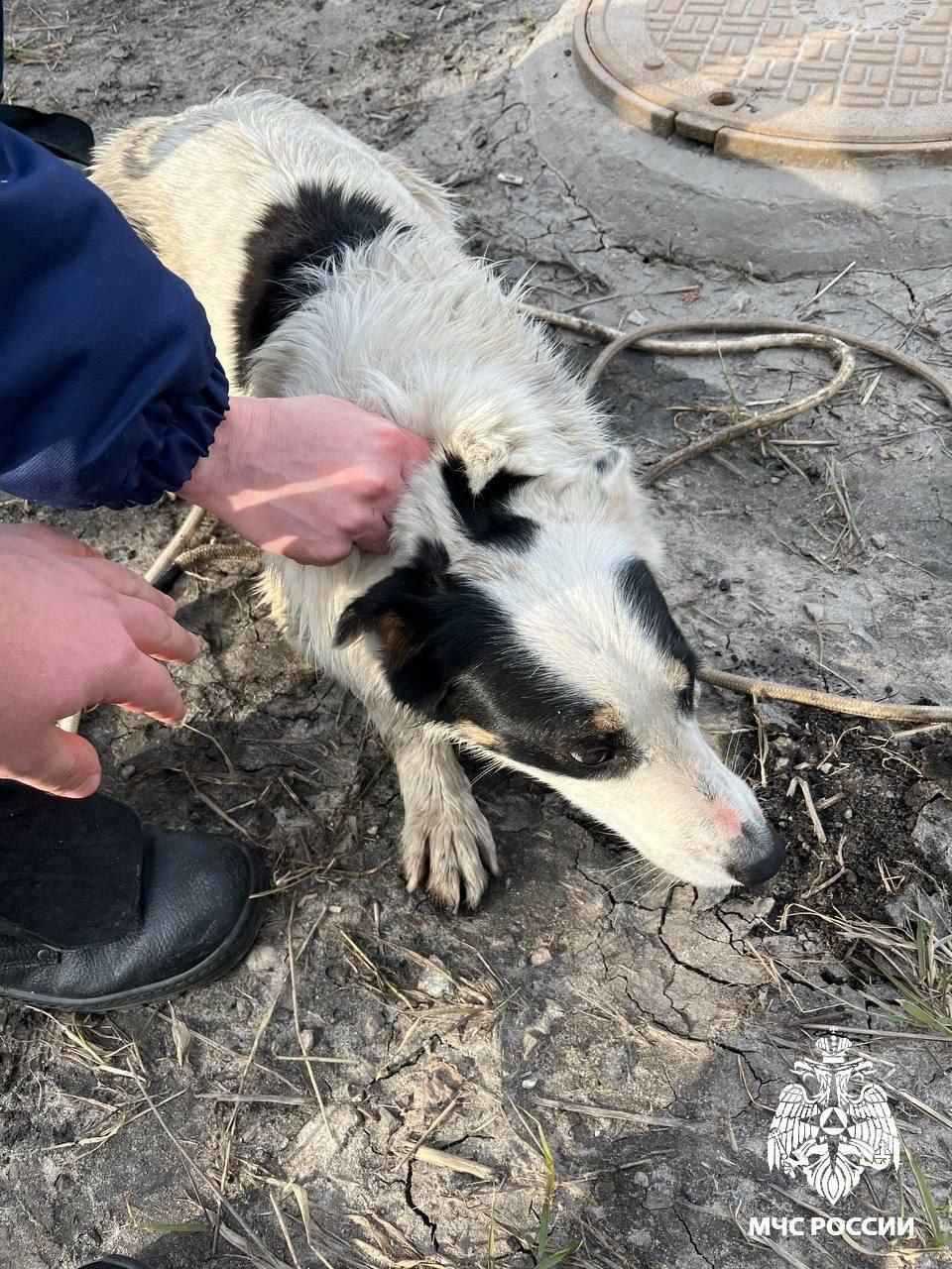 В поселке Разумное Белгородской области две собаки упали в канализационный колодец. Выбраться из четырехметровой ямы они не смогли. Отчаянный вой услышали очевидцы и позвонили спасателям.