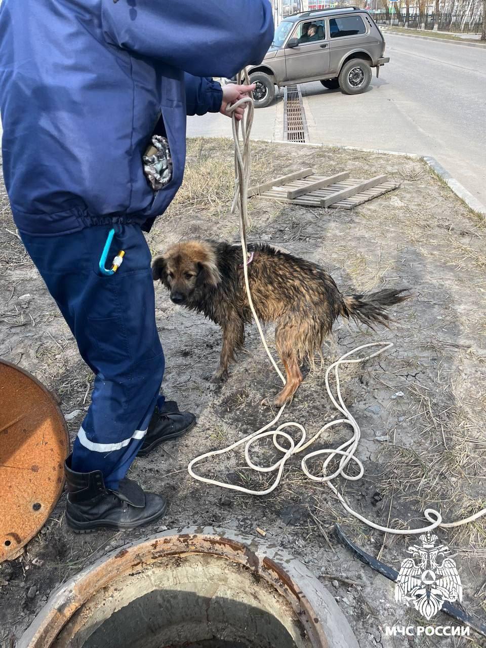 Сотрудники МЧС России спустились в колодец, зафиксировали собак веревками и подняли на поверхность.