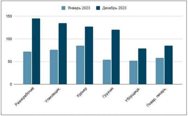 Разнорабочие, упаковщики, грузчики, стали получать в среднем 140 тысяч рублей.