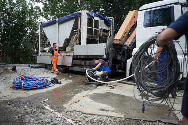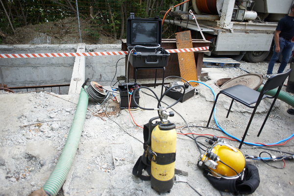 Чтобы процедура прошла успешно и новая труба не была повреждена в процессе прокладки, а также чтобы объективно заранее оценить все трудности, которые могут возникнуть во время санации, проводится тщательное обследование трубы, подготавливаемой к ремонту. Канализационный коллектор, проложенный под Исетью, не может быть опорожнен для проведения такого обследования. Это значит, что возможности теледиагностического оборудования, предполагающие только съемку, не соответствуют потребностям. Видимость внутри неопорожненного коллектора значительно ниже средней, и значит, съемка не даст объективной картины происходящего. Именно поэтому проводится водолазное обследование — погруженный внутрь коллектора специалист вручную оценивает поверхность и обнаруживает неровности возможные посторонние предметы, находящиеся внутри коллектора.