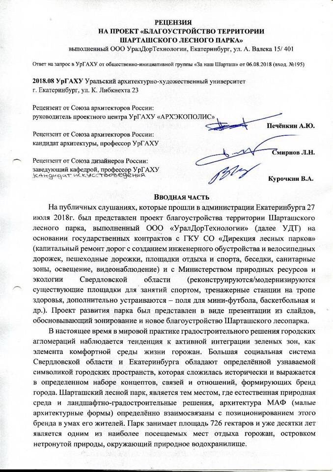 Екатеринбургские активисты попросили специалистов Архитектурного Университета дать оценку предложения по реконструкции Шарташского лесопарка. Их рецензию члены инициативной группы из четырех человек направили губернатору Свердловской области Евгению Куйвашеву.