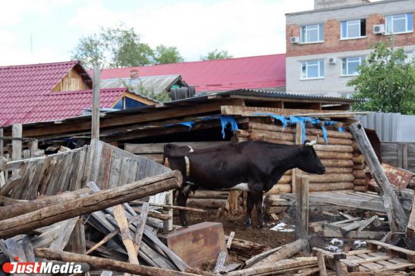 Мертвую корову, которая почти две недели лежала во дворе частного сектора в центре Лесного утилизировали. На территорию дома минипогрузчик не прошел. Было принято решение сначала сдвинуть тушу трактором к краю участка, а уже после увезти.
