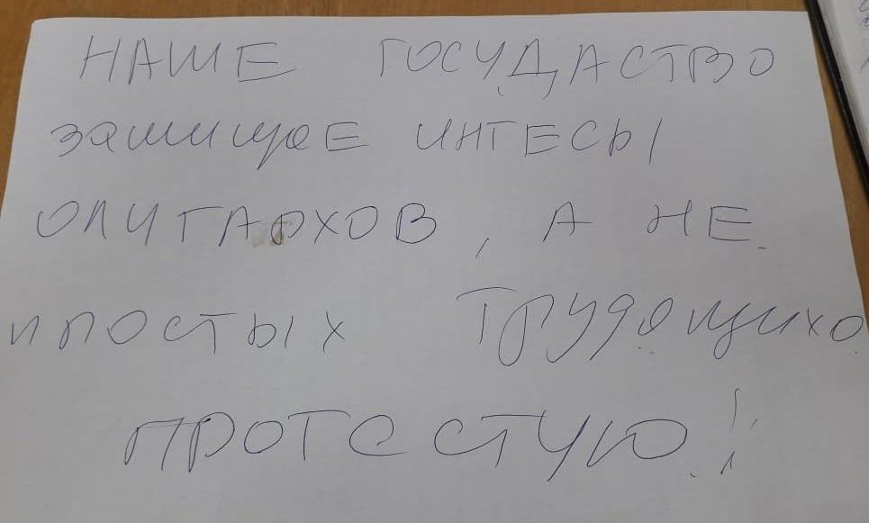 На листе ватмана он собирается сделать надпись «Наше государство защищает интересы олигархов, а не простых трудящихся. Протестую!» В разговоре с журналистом агентства он пояснил, что начал думать над текстом только вчера, поэтому, возможно, он поменяется.
