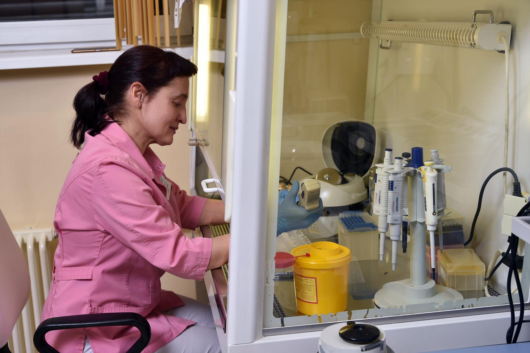 Лаборатория молекулярной биологии, иммунофенотипирования и патоморфологии – одна из передовых в нашей стране лабораторий, проводящих сложные генетические и патологоанатомические исследования для детей и взрослых. Здесь обследуются дети из 11 регионов нашей страны. Ежегодно проводится до 2500 высокотехнологичных исследований, направленных на диагностику лейкозов, лимфом, солидных опухолей, отслеживание эффективности лечения, выбора мишеней для назначения таргетной терапии.