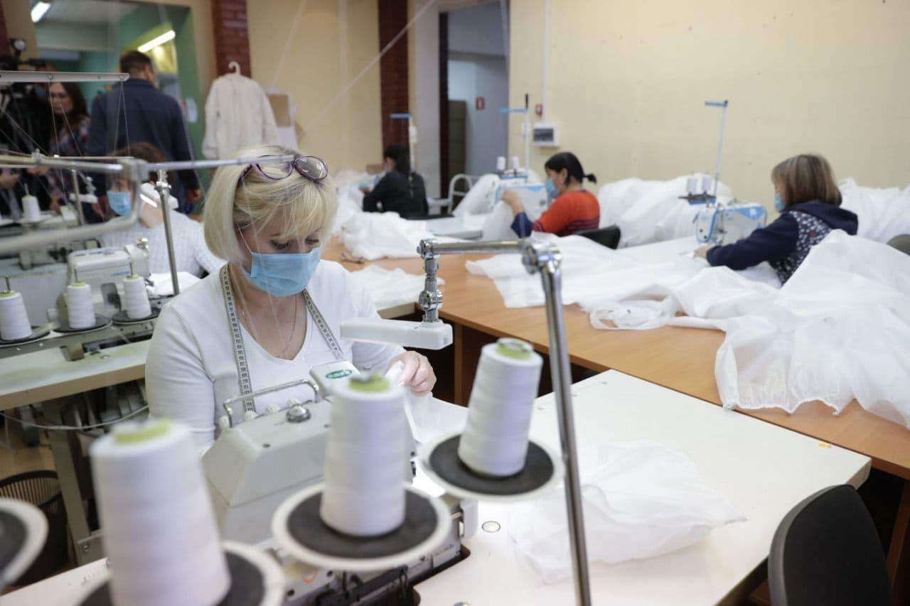 Костюмы и бахилы производятся с определенными улучшениями. Все швы дополнительно проклеиваются термопленкой для исключения даже минимального риска разгерметизации. Сама ткань изготовлена как мембрана, которая позволяет выводить воду, не пропуская вирусы внутрь. Каждый комплект используется около шести часов, после чего обрабатывается и утилизируется.