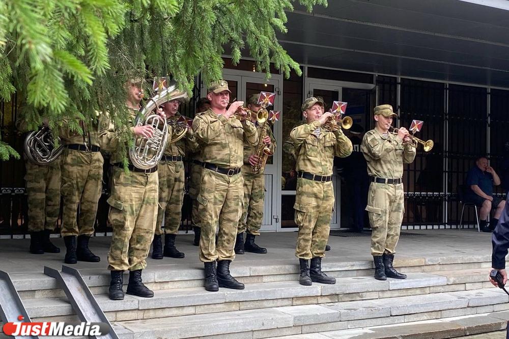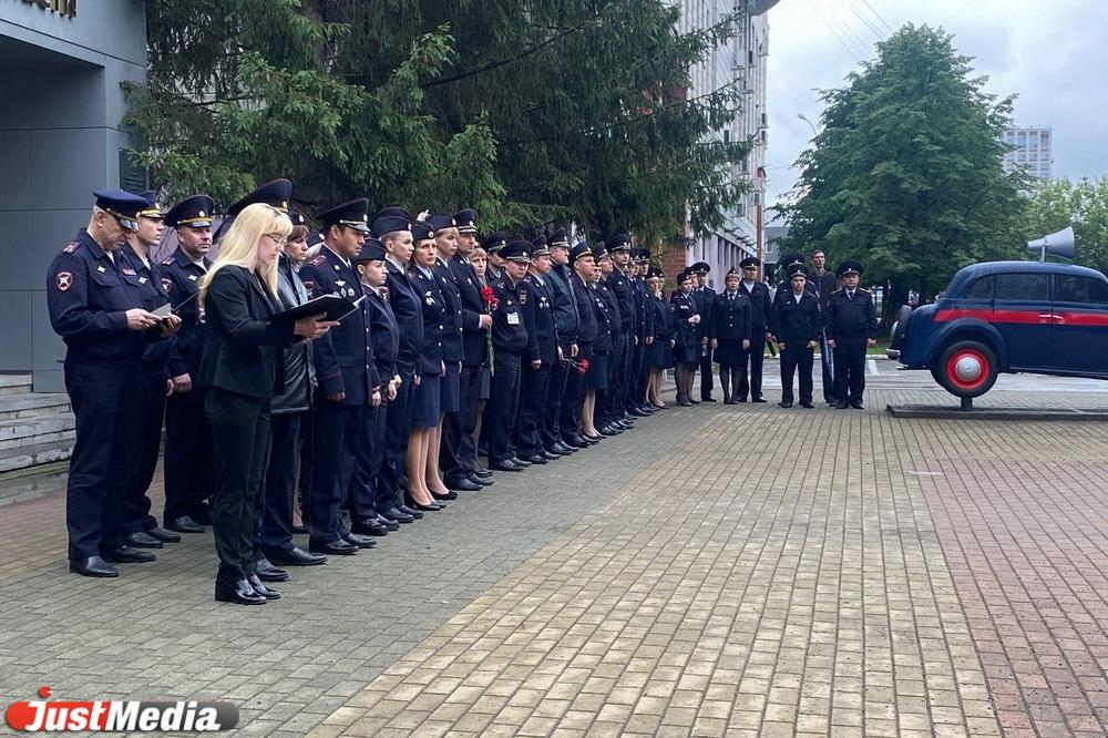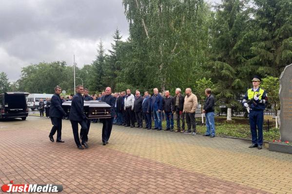 Траурный кортеж прибыл к зданию Свердловской Госавтоинспекции. Гроб с телом Юрия Демина установили у мемориального комплекса в честь погибших при исполнении служебного долга сотрудников ДПС. Рядом с ним стоит почетный караул. Вдоль здания ОблГИБДД в ряд выстроились более 20-и патрульных машин и включили сирены.
