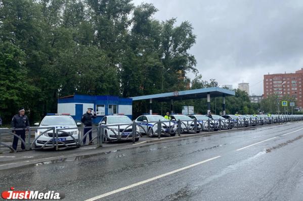 Вдоль здания ОблГИБДД в ряд выстроились более 20-и патрульных машин и включили сирены.