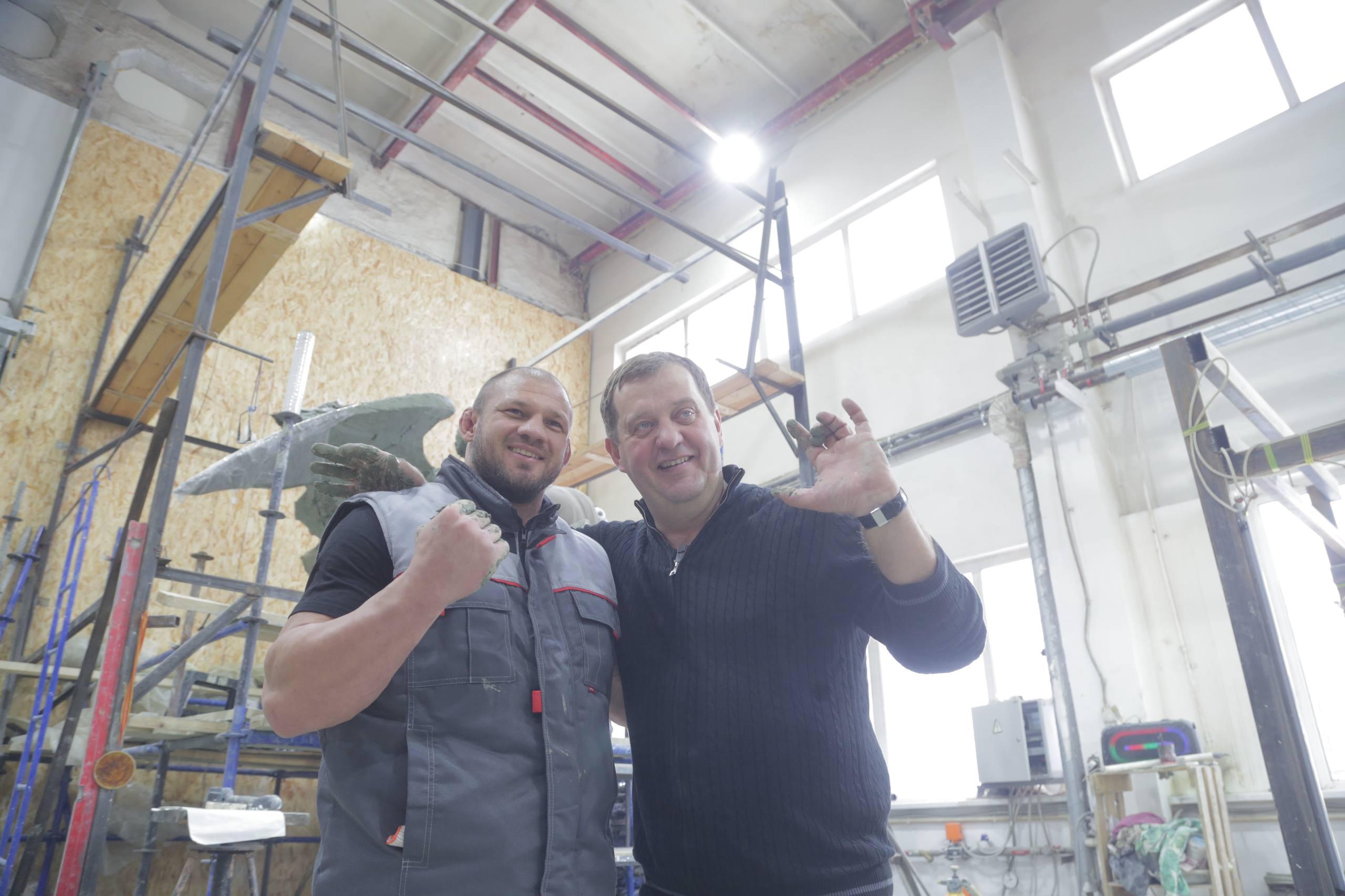 Спортсмены не просто погрузились и узнали каждый этап производства, но дали старт созданию фигуры Архангела Гавриила. Бойцы положили первый слой специальной глины на так называемый скелет скульптуры. Позже рука мастера придаст ей очертания, знакомые всем верующим в мире.