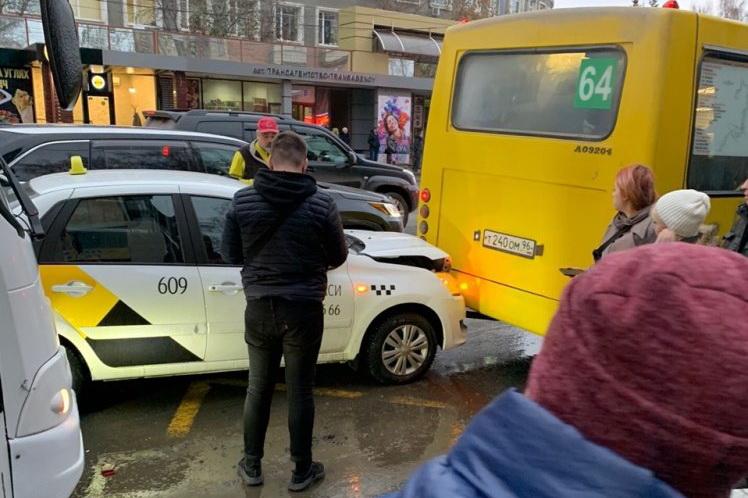 «Остановка «Трансагентство». Такси заезжало в свой ряд, и его сзади долбанул автобус. Следовательно, тройная авария», - пишет подписчик Михаил.