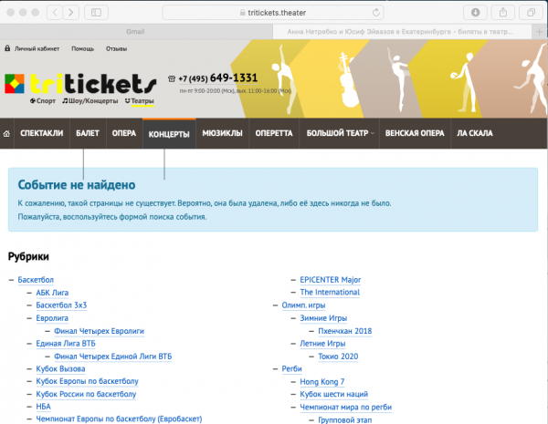 В интернете на сайте Tritickets начали продавать поддельные билеты на концерт Анны Нетребко и Юсифа Эйвазова в Екатеринбурге. Билеты продавались по цене от 11 250 до 58 500 рублей. При этом схема зала не соответствует залу конгресс-центра «Екатеринбург-Экспо». Об этом JustMedia.ru сообщили организаторы мероприятия.