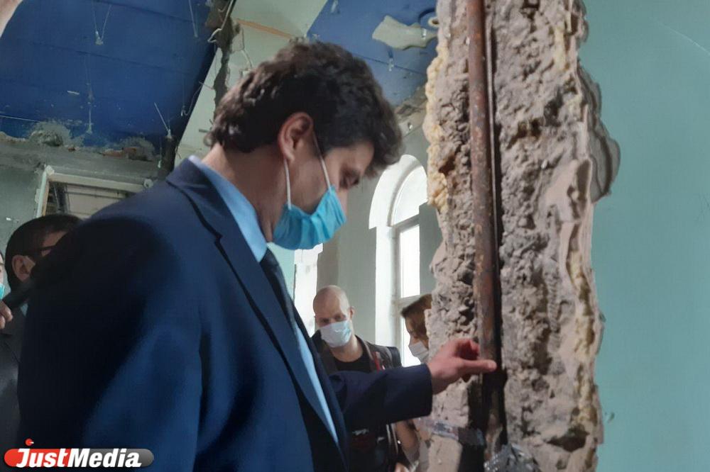 Глава Екатеринбурга Александр Высокинский в рамках объезда Октябрьского район осмотрел ход реконструкции Екатеринбургского театра кукол. Чиновник осмотрел внутреннее и внешнее состояние ремонтируемого здания. Решение, к которому пришел градоначальник – на ремонте нужно сэкономить.