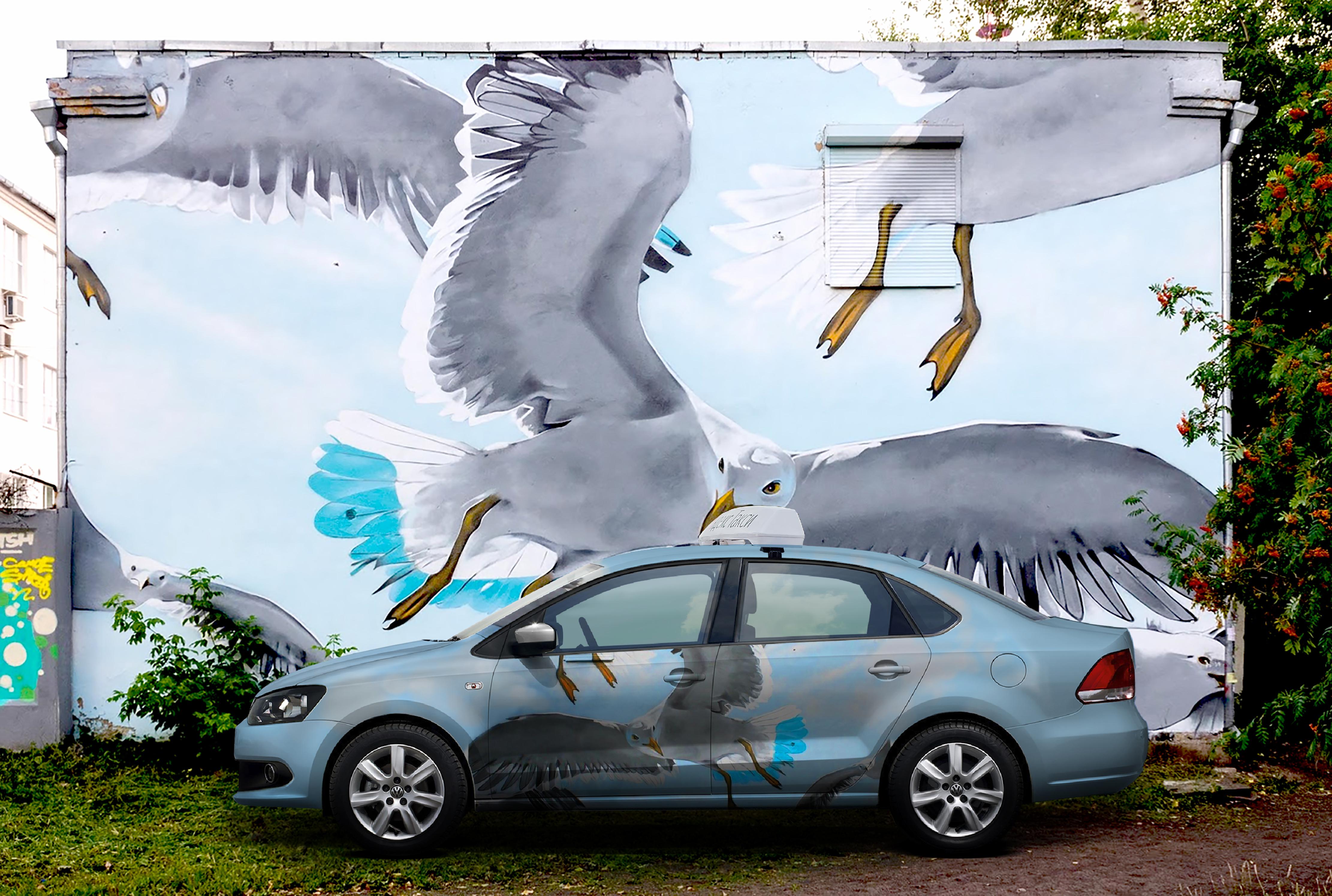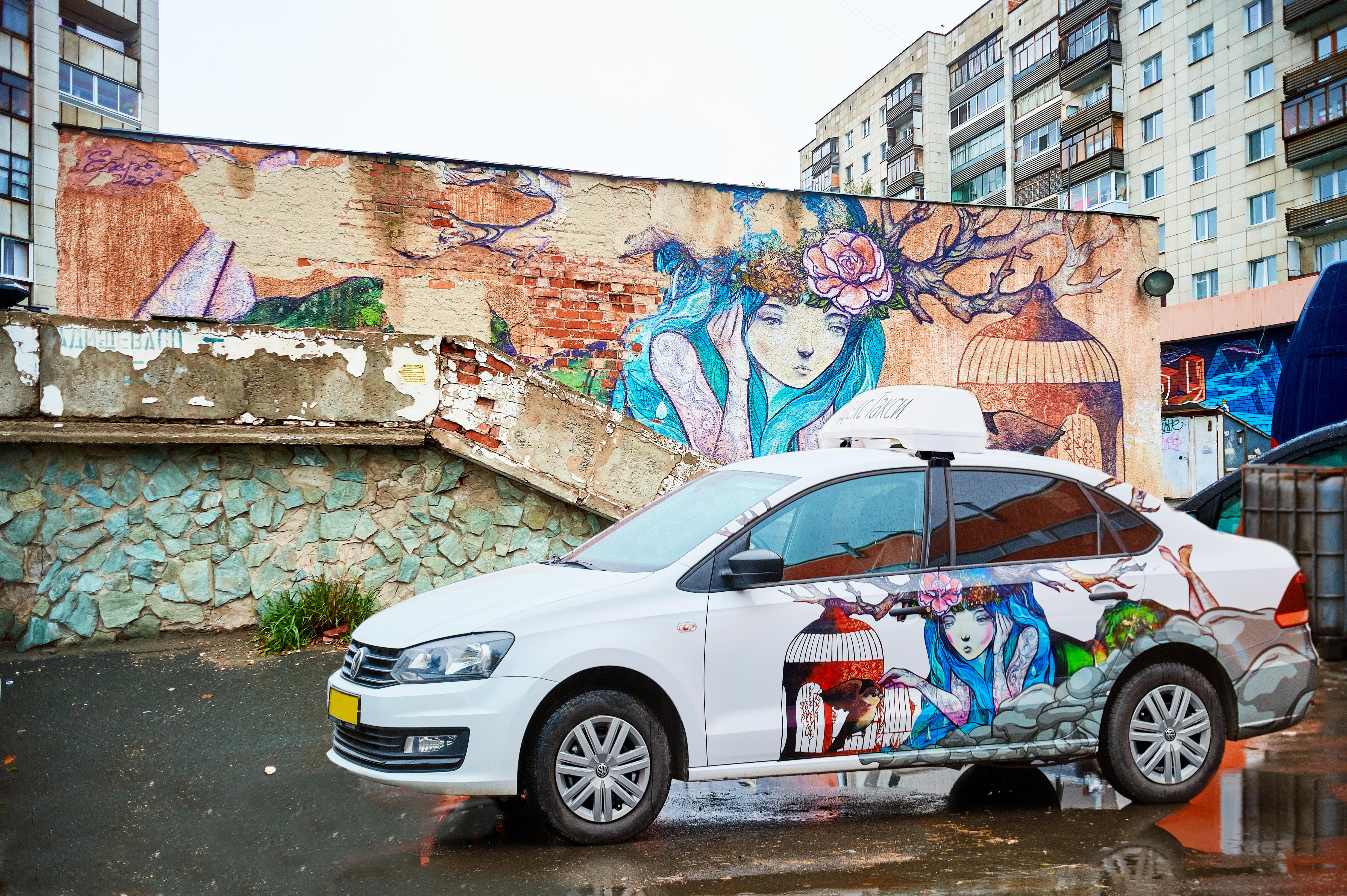 «Машины такси – важная часть городской среды, а пейзаж современного города невозможен без уличного искусства. Так родилась идея разместить на бортах автомобилей знаковые работы уральских street art художников», – говорит один из организаторов фестиваля «УРА! УРАЛ!» Катерина Доник.