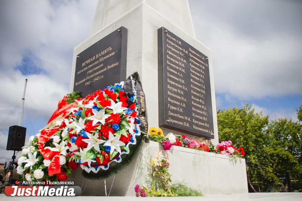 В день памяти и скорби прошла торжественная церемония открытия памятника погибшим в годы Великой Отечественной войны землякам в поселке Шувакиш — единственной из отдаленных территорий Екатеринбурга, где до сегодняшнего дня не было никаких мемориалов, посвященных этому событию.