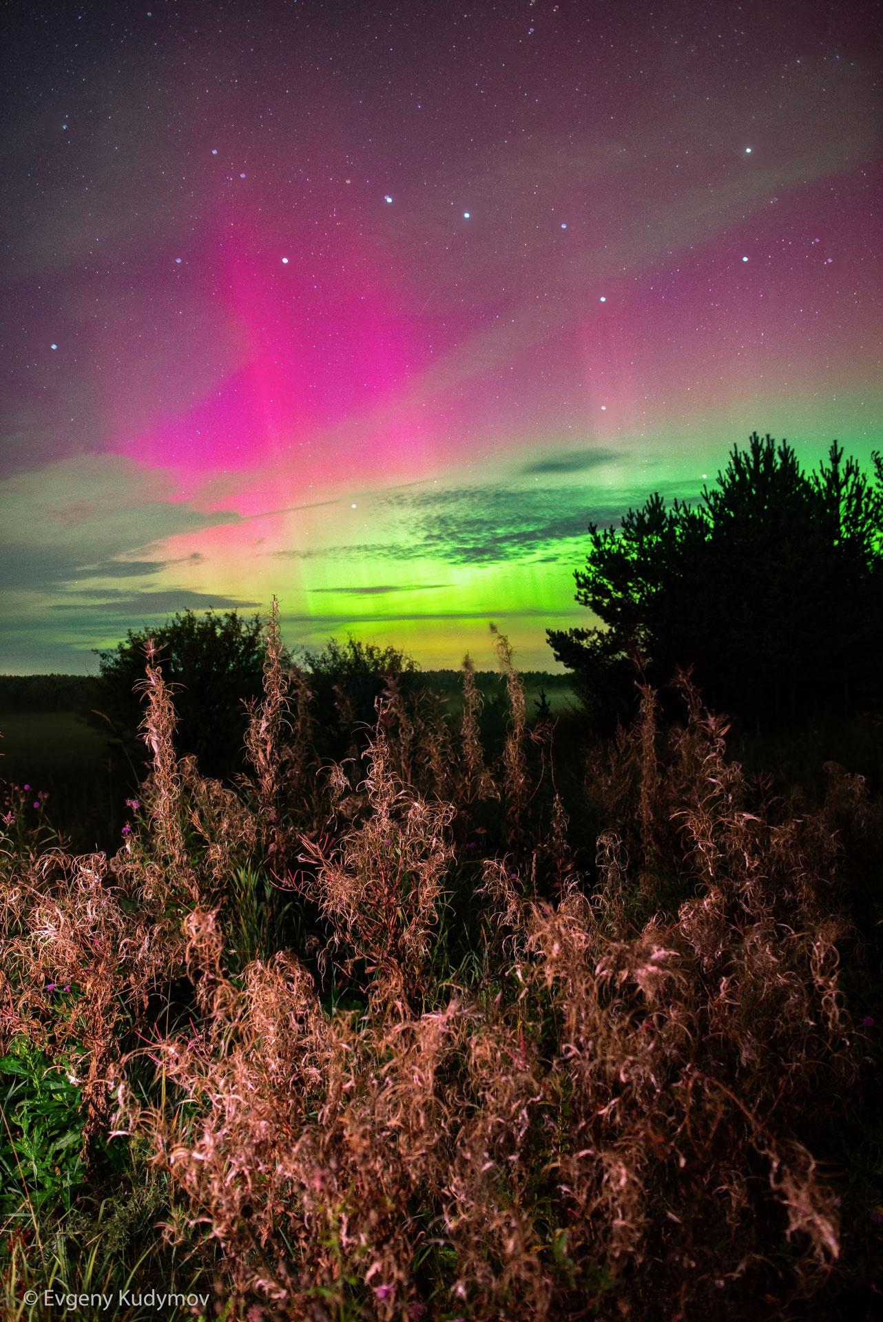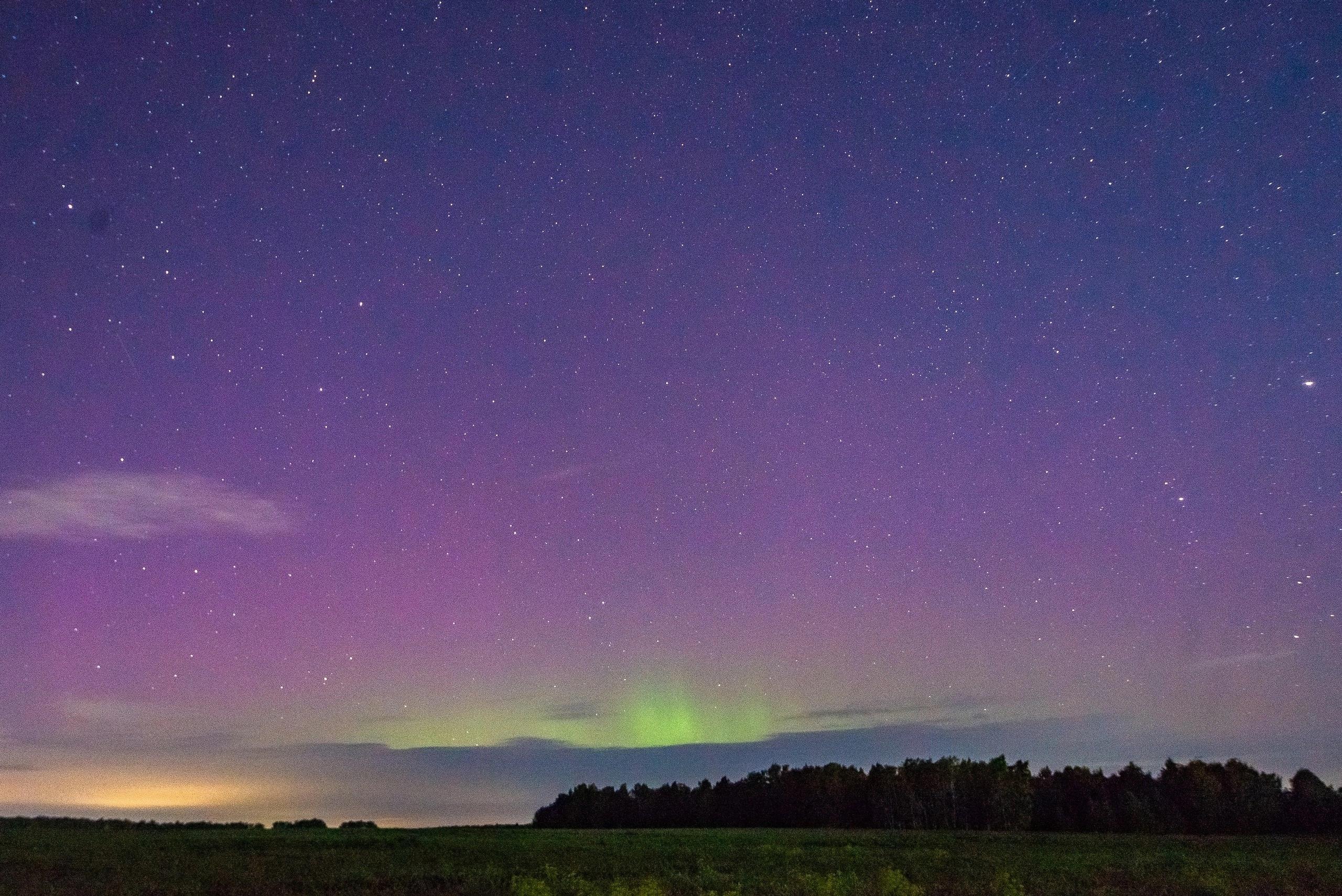 В объектив уральского астрофотографа Евгения Кудымова попало северное сияние над Уралом. Природное явление было запечатлено сегодня ночью.
