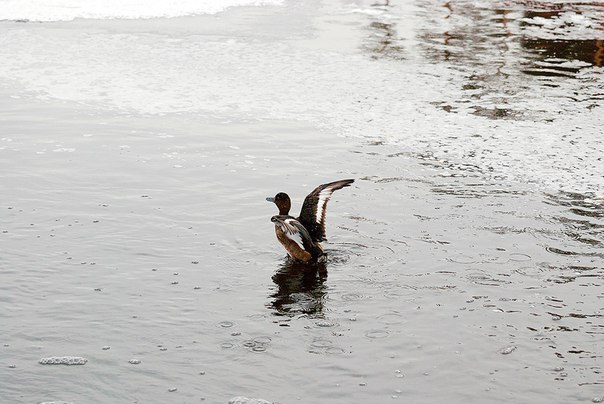 «Я регулярно с середины октября кормил утку специально приготовленным кормом: размороженной рыбой, вареным пшеном — ветеринар мне подсказала, что хлебом кормить утку противопоказано».