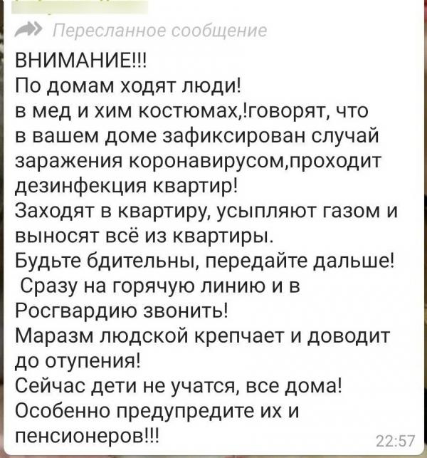 На волне распространения коронавирусной инфекции мессенджеры захлестнула очередная волна фейковых страшилок. Оперативный штаб по коронавирусу зафиксировал многочисленные случаи веерных рассылок аудио и текстовых сообщений с недостоверной информацией.