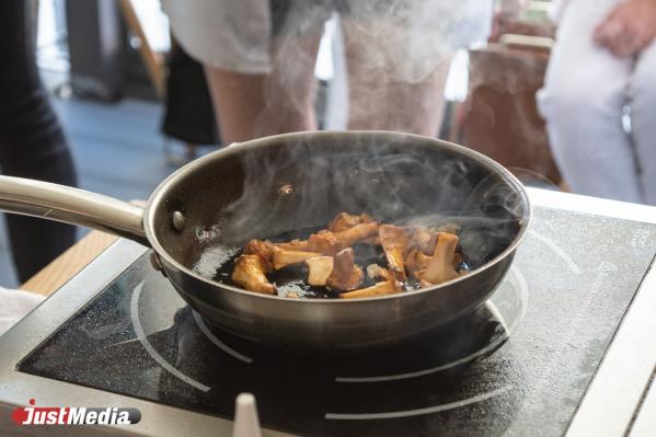 Торжественное открытие фестиваля состоялось в Grand Buffet Ekaterinburg. Здесь шеф-повар ресторана «OVO izakaya» Максим Погадаев научил гостей правильному приготовлению грибов на сливочном масле. Какое это великолепие, когда прямо при тебе выпускник института Поля Бокюза в Лионе готовит блюдо – не передать.