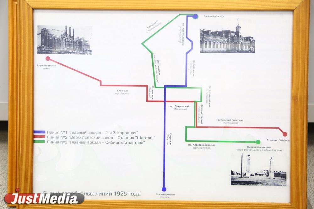 В конце зимы 1925 года горкомхоз приобрел пять автобусов Ford на 12 мест. Весной того же года разработали четыре маршрута, но в мае запустили только первые два: №1 «ж/д вокзал – современная Фрунзе», №2 «ВИЗ – Шарташ». Время в пути — 15-25 минут. Стоимость проезда за одну остановку — 2 копейки. В будние дни автобусы ходили с 07:30 до 17:00, в праздники и выходные — с 12:00 до 21:00. В автобусах тех лет уже были кондукторы.