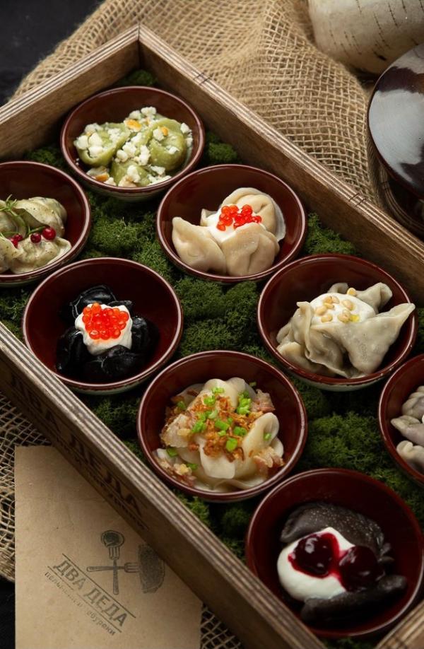 В бистро «Два Деда» (ул. Малышева, 270) в сет за 1190 рублей войдут пельмени и вареники с начинкой на выбор. В меню есть пельмени с олениной, пихтой и брусникой; пельмени с лососем и крем-фреш в сливочно-икорном соусе; вареники с белыми грибами, трюфельным айоли и кедровыми орешками; вареники из черемуховой муки с вышней, сметаной и вишневым вареньем и многое другое.