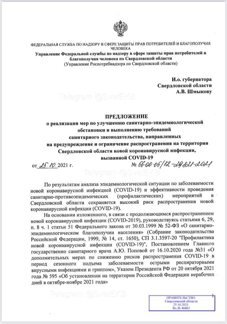 Роспотребнадзор предложил властям Свердловской области ввести жесткий локдаун, не дожидаясь наступления нерабочей недели. Письмо на имя и.о. губернатора Алексея Шмыкова написала врио главного санитарного врача региона Ольга Диконская. Ожидается, что решение будет приниматься уже сегодня.