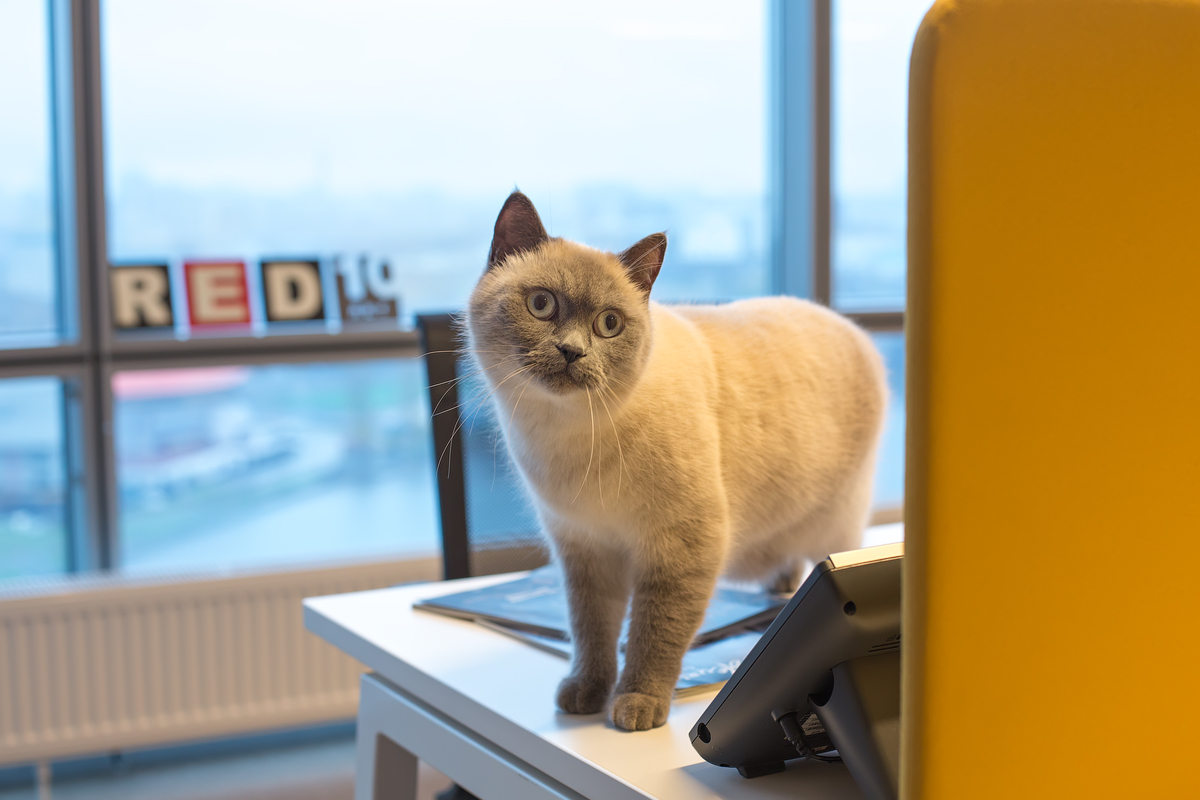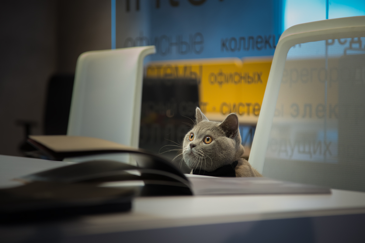 Рабочий день котов начался, как водится, со стойки ресепшн, где им были выданы ключи от офиса, и утреннего совещания в кабинете.