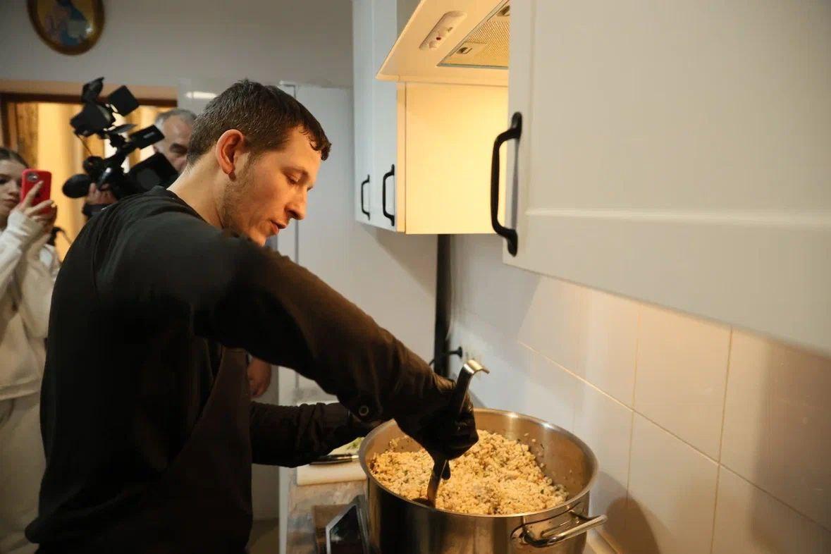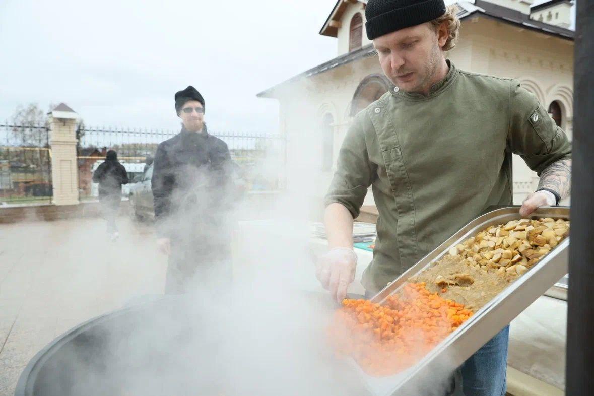 В селе Новоипатово на территории старинного храма Архангела Михаила прошел благотворительный обед. Специально для этого шеф-повара ресторана Olio Иван Рыбин и Академии единоборств РМК Алексей Беляев разработали рецепты монастырского овощного супа с белыми грибами и подкопченной перловки с уральской ягодой и петрушкой.