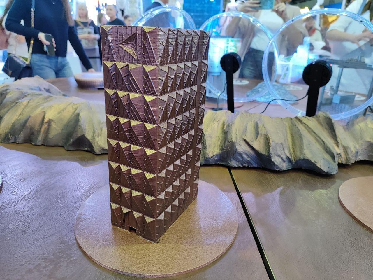 Родом с Урала даже многие материалы. Например, пол стенда изготовлен из 300 килограммов меди. Вероятно, из неё же и макет офиса-ананаса РМК.