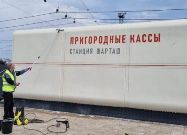 Уборка территорий, прилегающих к вокзалам и станциям, помывка фасадов и окон пассажирских зданий проводится, в первую очередь, на объектах в границах городских агломераций и с большим пассажиропотоком. Работы уже завершены на станциях Шарташ, Шувакиш, Богданович, Алапаевск, Невьянск в Свердловской области; Левшино, Молодежная, Курья, Оверята, Верещагино в Пермском крае; Заводоуковская, Ишим, Ялуторовск в Тюменской области и др.