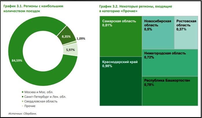 «Если в середине 2017 году на рынке активно работали 5 компаний, то в начале прошлого года — уже 13. Лидер рынка — Москва (85%). На втором месте – Санкт-Петербург, который занимает 8,3 % рынка. Замыкает тройку Свердловская область с долей более 1%», - говорится в исследовании банка.