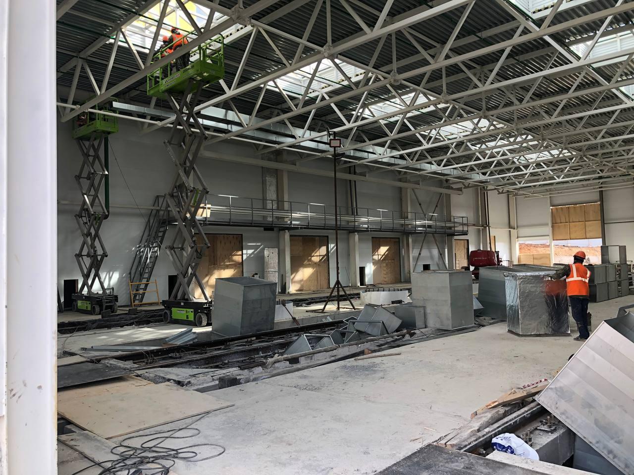 На сегодняшний день полностью завершено устройство фасадов и кровли. Ведется монтаж внутренних инженерных сетей и работы по внутренней отделке помещений. На 50% выполнено устройство верхнего строения пути.