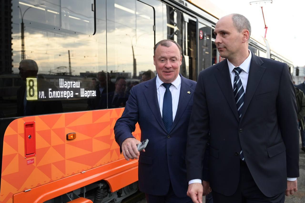 Трехсекционные трамваи в Екатеринбурге будут ходить по маршруту №18 Шарташ – Волгоградская (Юго-Запад). Первая партия из семи вагонов прошла обкатку и выходит на маршрут. Накануне трамваи осмотрели врио губернатора Свердловской области Денис Паслер и глава Екатеринбурга Алексей Орлов.