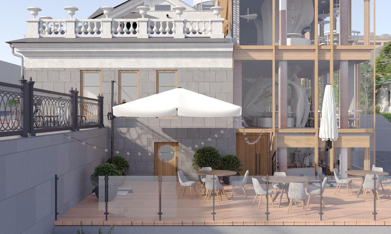 Территория за Музеем будет условно разделена на две части. На одной из них появится ресторан, а на другой – современный сквер и технические помещения для заведения. В планах также преобразить территорию за зданием ресторана, а также между ним и набережной Исети.