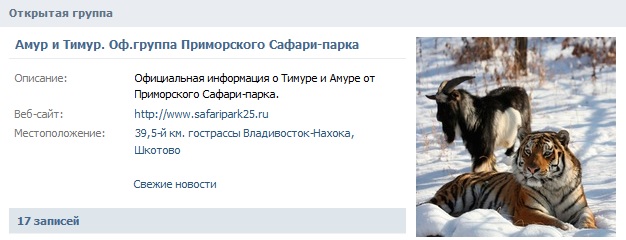 Руководство Приморского сафари-парка создало отдельные группы Амур и Тимур в двух социальных сетях — Вконтакте и Одноклассники, где будут публиковаться все свежие новости о необычной дружбе козла и тигра, сообщает официальный сайт парка.