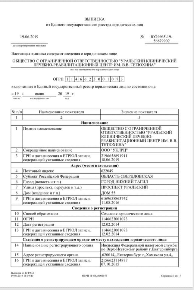 Уральскому клиническому лечебно-реабилитационному центру сегодня официально присвоили имя Владислава Тетюхина. Об этом на своей странице в социальной сети Facebook сообщил депутат Государственной Думы РФ Алексей Балыбердин, опубликовавший выписку из Единого государственного реестра юридических лиц.