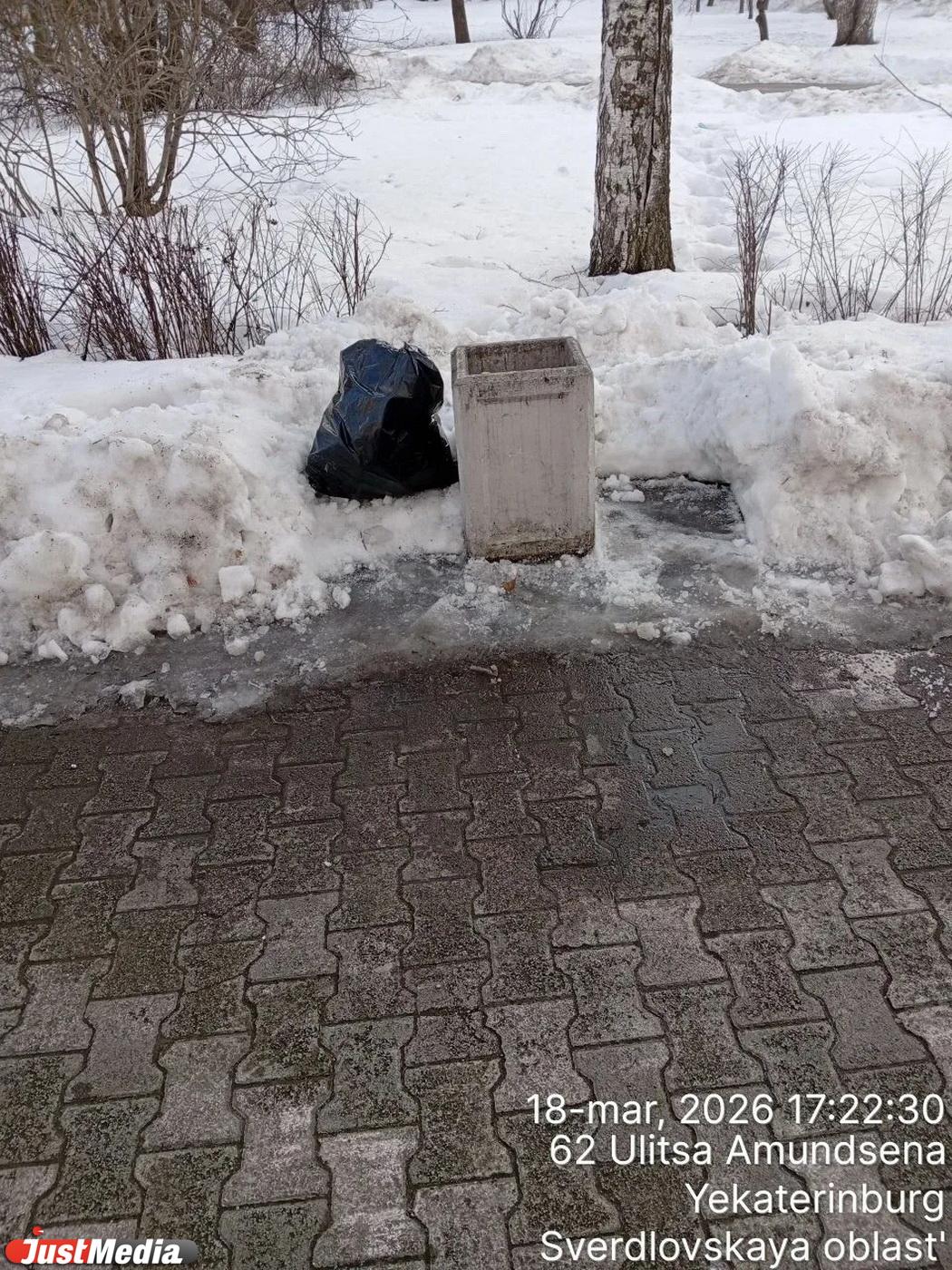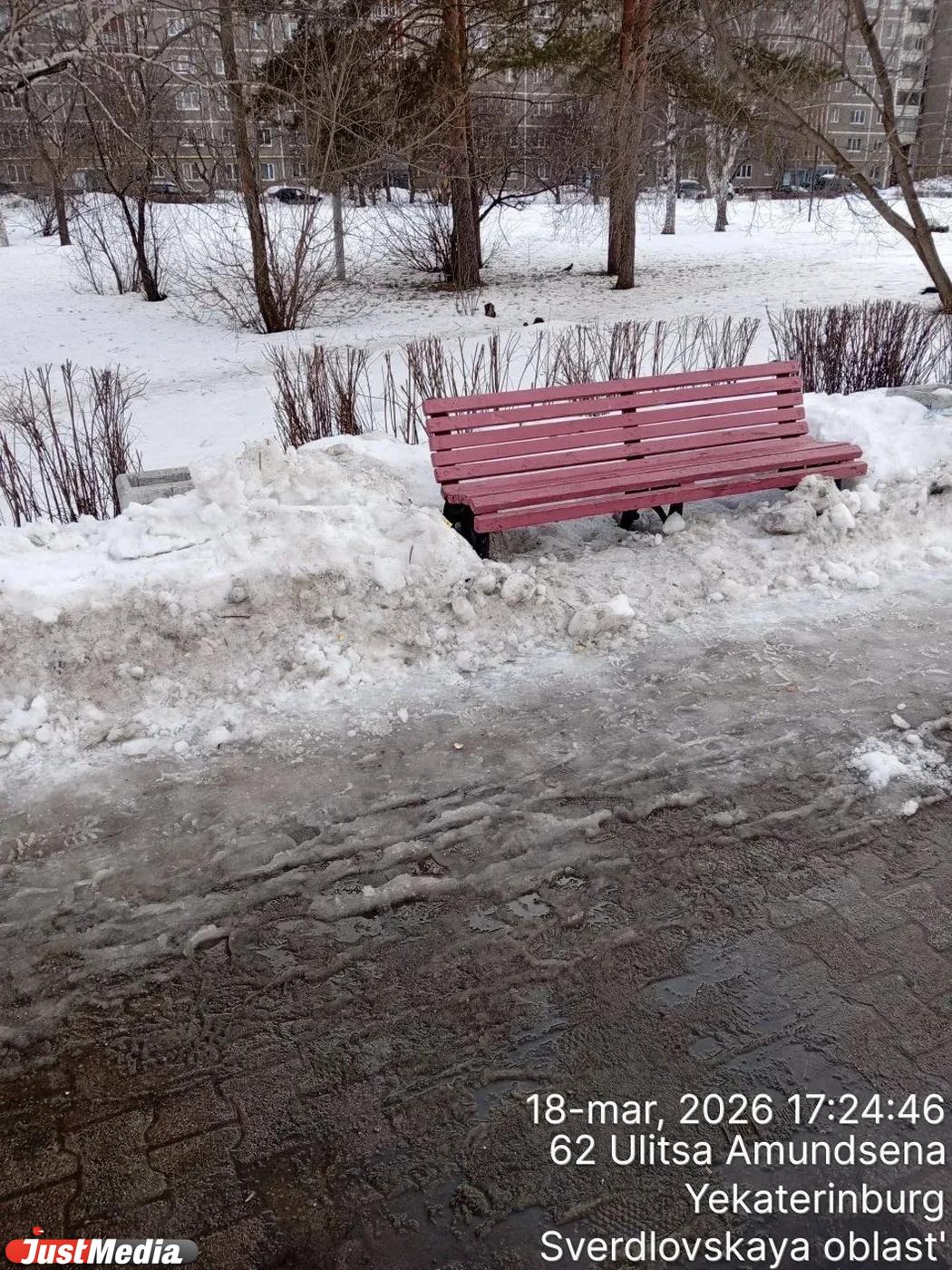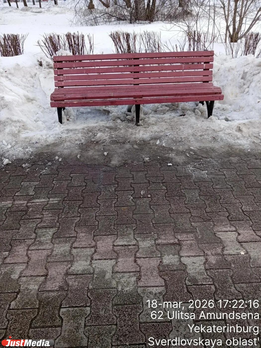 В Екатеринбурге жители ЮЗа пожаловались на отсуnствие уборки в парке Архипова. По их словам, урны переполнены, и их содержимое по территории парка растаскивают птицы. Скамейки превратились в сугробы и на них невозможно присесть.