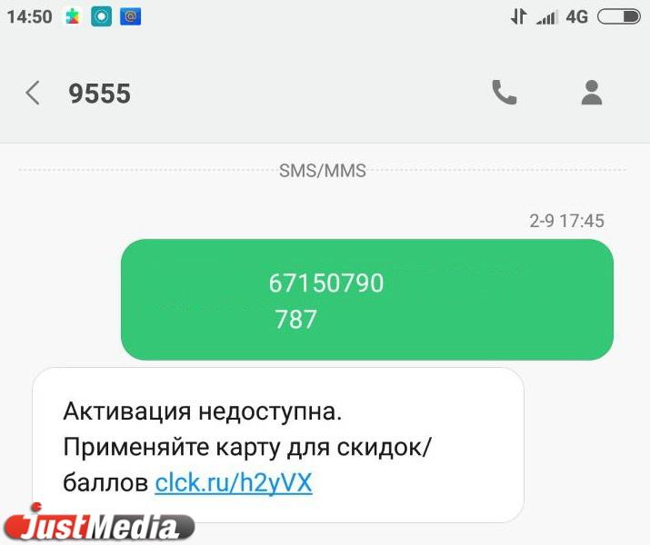 «Купила. В буклете к ней указано, что ее можно активировать с помощью SMS, на сайте или в мобильном приложении. Я попыталась это сделать первым способом, но в ответ пришло: «Активация недоступна». Через сайт это также сделать не получилось. Дозвониться до оператора мне не удалось. Получается, что информация в буклете не соответствует действительности, что, на мой взгляд, является введением потребителя в заблуждение. Один из продавцов в магазине сказал мне, что активировать карту можно только в мобильном приложении, но я не хочу его скачивать. В итоге получается, что старую карту не принимают, а новую — не активируют», — рассказывает жительница Екатеринбурга.