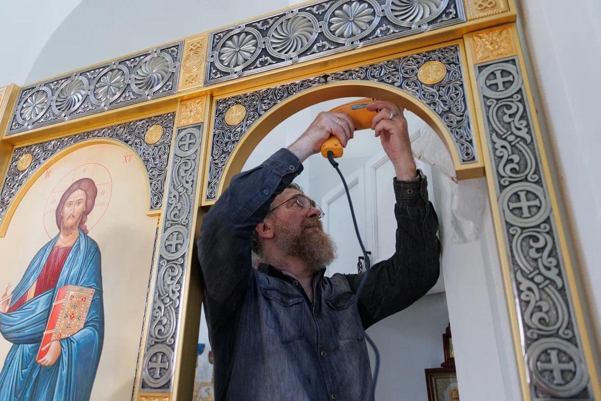 Часовня святой Екатерины активно готовится ко Дню города. Перед алтарем устанавливают новый иконостас — дар от Крыма столице Урала.