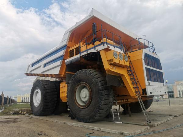 Карьерный автосамосвал БелАЗ-75600, предназначенный для перевозки вскрыши и полезных ископаемых на открытых горных разработках, привезли в Верхнюю Пышму из Кемерово. За 11 лет работы на «Кузбассразрезугле», одном из самых крупных в России предприятий по добыче угля, он преодолел около 620 тысяч километров и перевез более 90 млн тонно-километров породы.