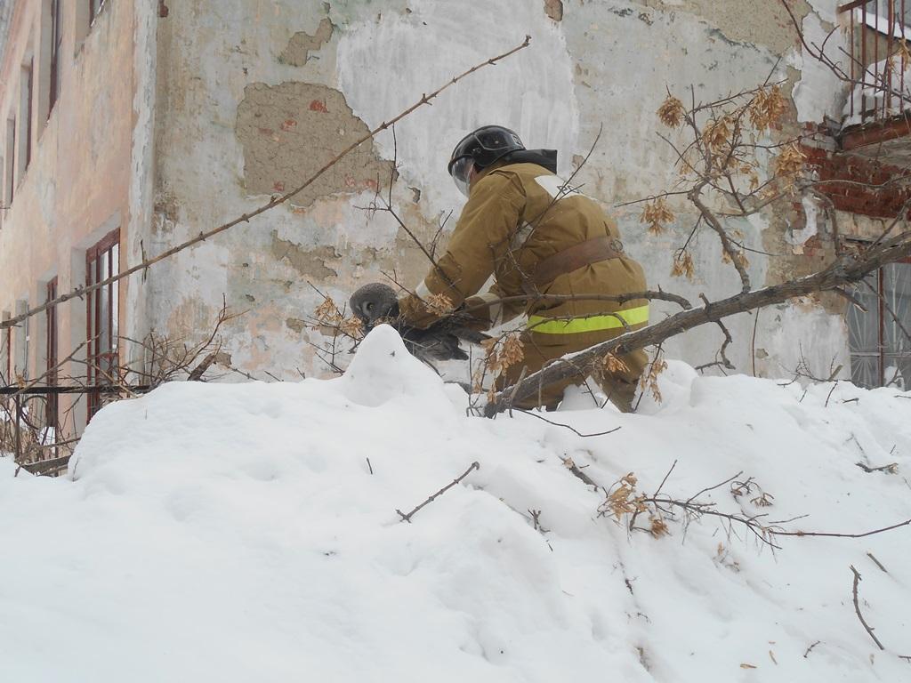 В Нижних Сергах пожарные спасли уставшую и обессиленную от голода сову. Птица три дня сидела на упавшей ветке дерева на территории школы №1.